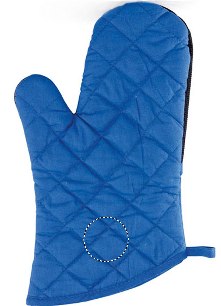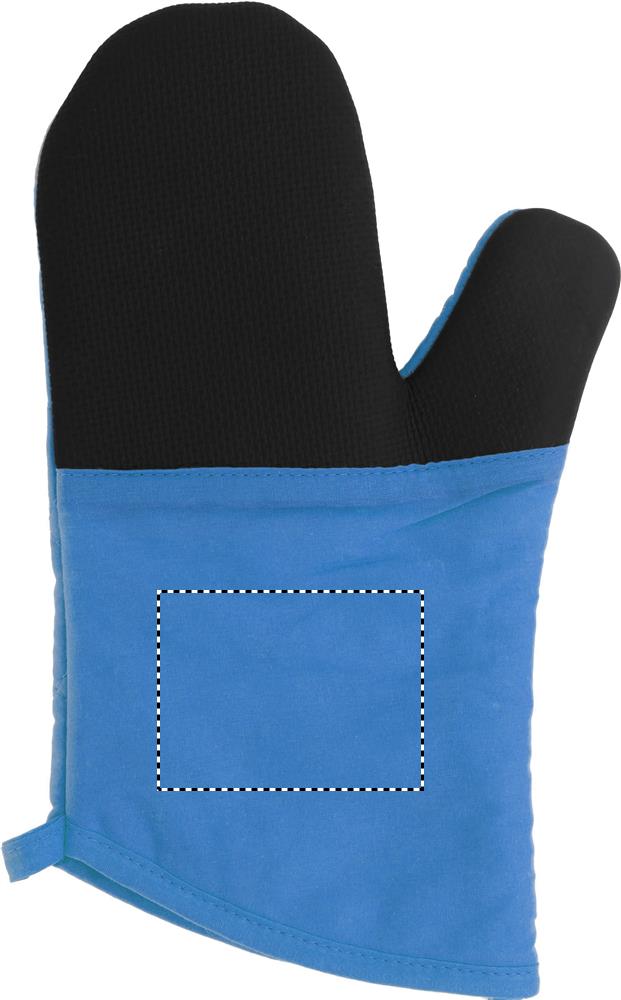 Useful kitchen oven glove in cotton material with one side rubber material. EN 407.