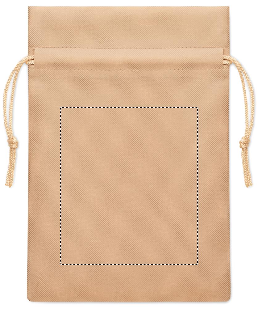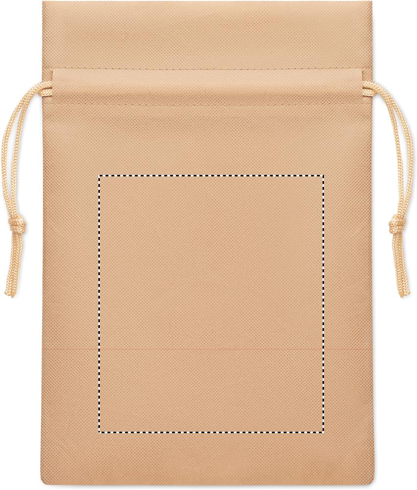 Small gift draw cord bag in RPET non-woven 80 gr/m². Size approx. 20×30 cm.