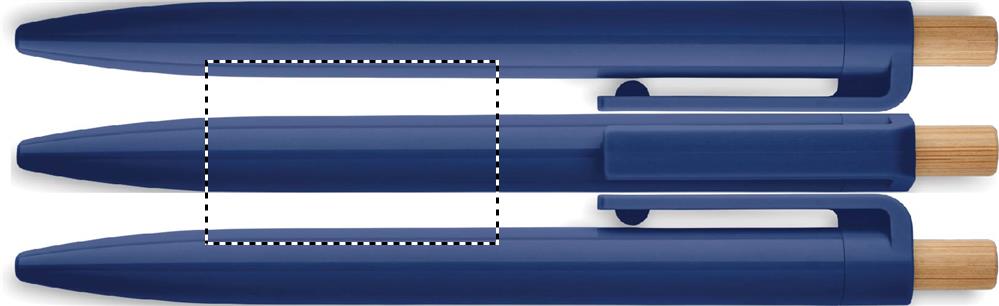 Ball pen in recycled ABS with bamboo push button. Blue ink.