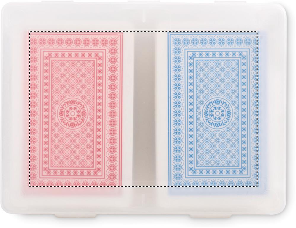 Set of 2 classic playing cards in recycled PP case. 2×54 cards (red and blue).