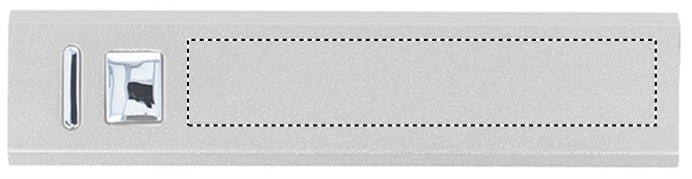 Powerbank. 2200 mAh. Recycled aluminium (GRS). Outputs: USB-A up to 5W. Input: USB-A 5W. USB-A to Micro USB cable (30 cm) with USB-C adapter included.