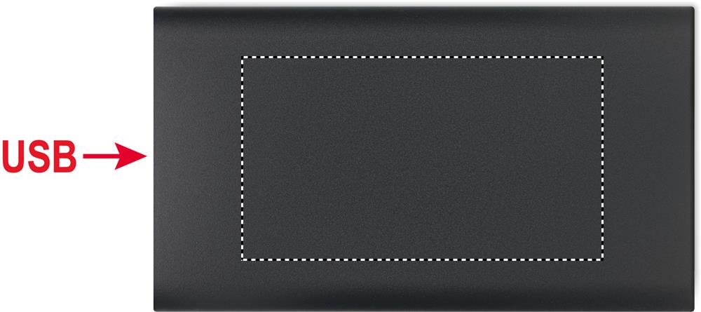 Wireless powerbank. 5000 mAh. Recycled aluminium and ABS (GRS). PD 18W. Outputs: USB-C 20W and USB-A up to 18W. Wireless charging up to 15W. Input: USB-C 18W. USB-C to USB-C cable (2A) with USB-A adapter included.