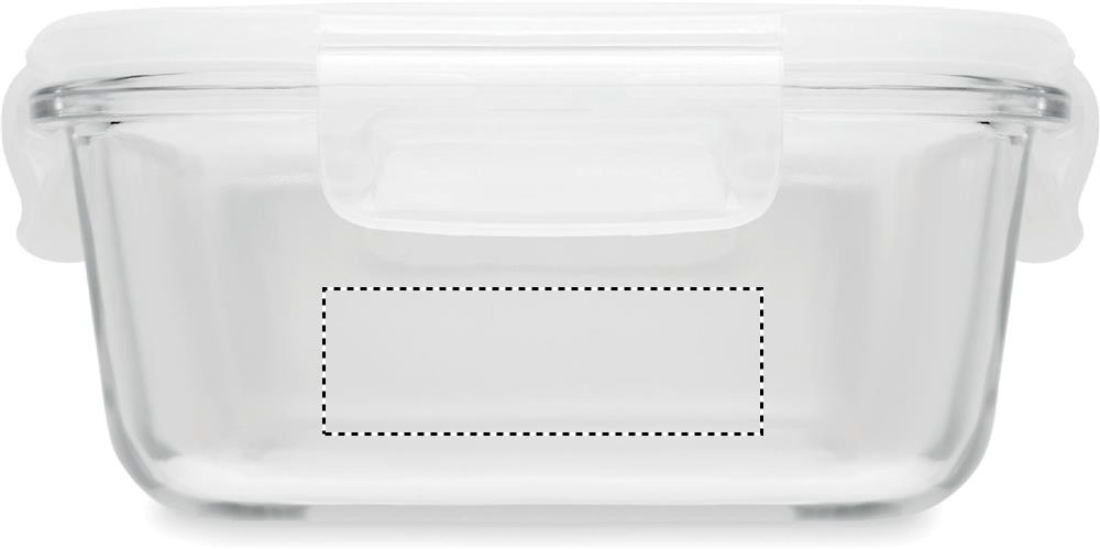 High borosilicate glass lunch box with air tight locking lid in PP. Suitable for microwave. Capacity 900 ml.