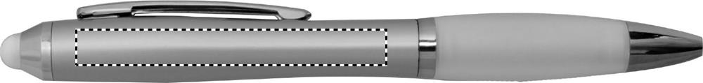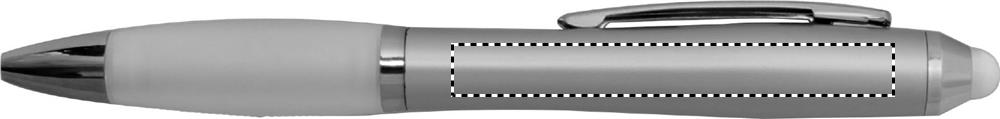Twist action ball pen in ABS with stylus soft grip and matching tip. Blue ink