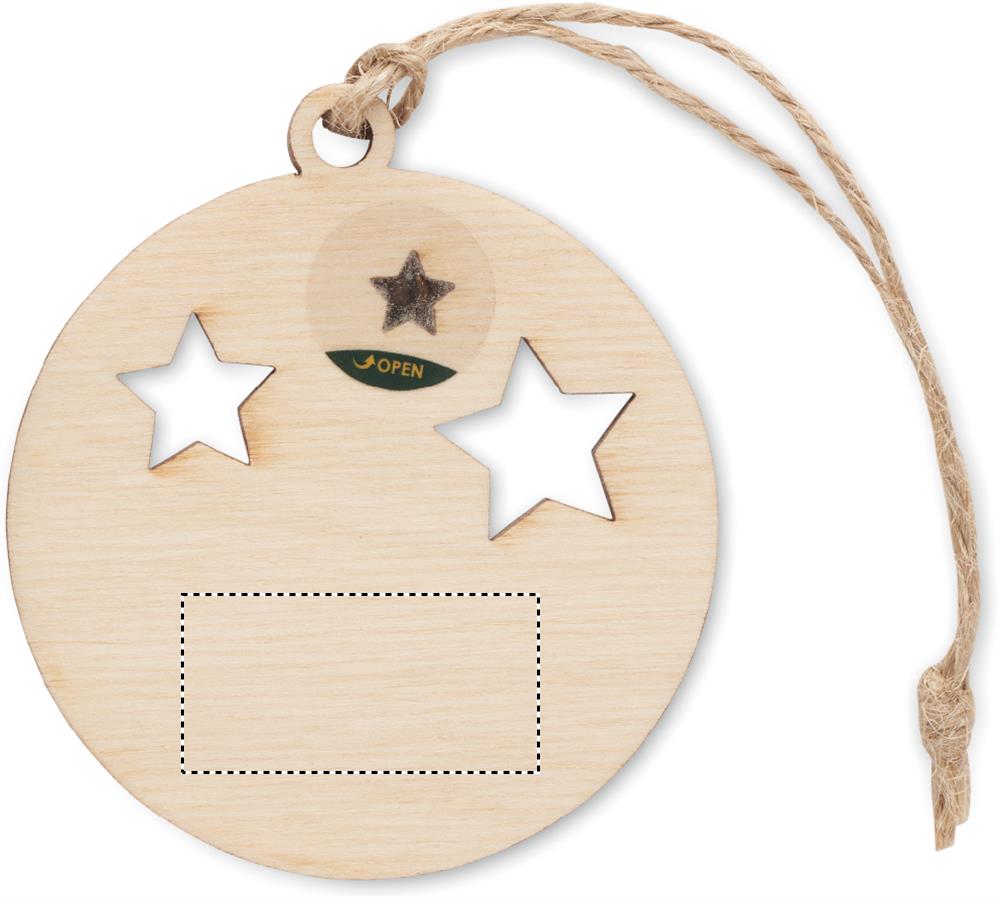 Wooden bauble shaped decoration hanger with jute cord including spruce seeds. Presented in kraft envelope. Made in EU.