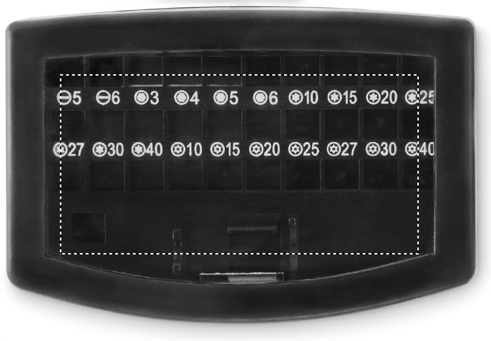 32 piece assorted screwdriver bit set with rotative clip holder.