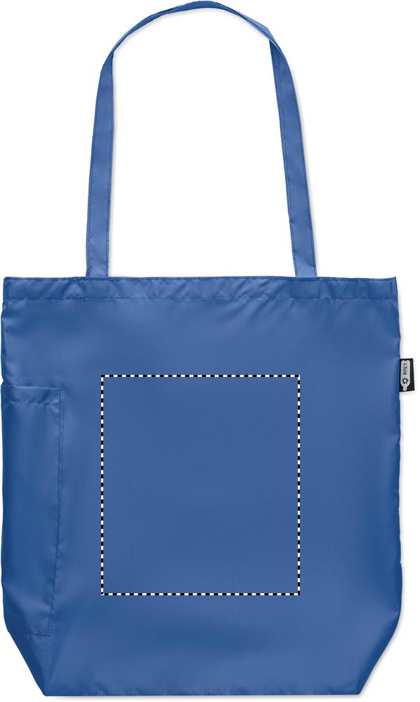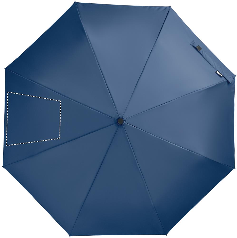 21 inch 3 fold manual open and closure windproof umbrella in 190T RPET pongee. Includes shopping bag pouch. Has hidden zippered compartment to hold umbrella and keep bag contents dry. When bag is not in use, it rolls up and zipper compartment acts as the umbrella sleeve.