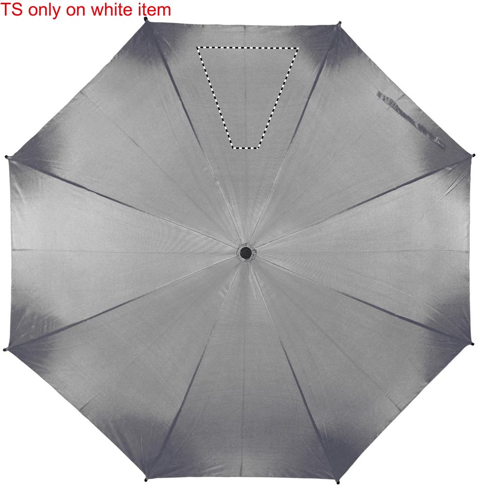 23 Inch auto open umbrella in 190T pongee with black plated metal shaft and ribs. Black plastic tips. Straight black EVA handle. Manual closure.