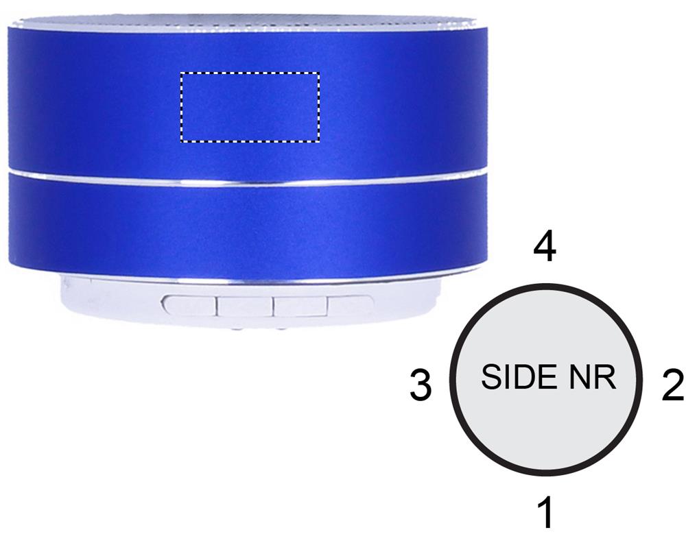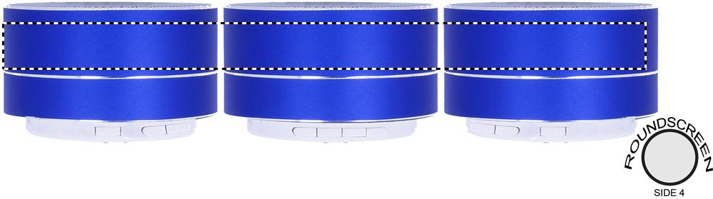 Aluminium 4.2 wireless speaker with rechargeable Li-on 450mAh battery and light at the bottom of the speaker. Output data: 3W, 4 Ohm and 5V. Micro USB cable included. Playing time aprox. 3h.