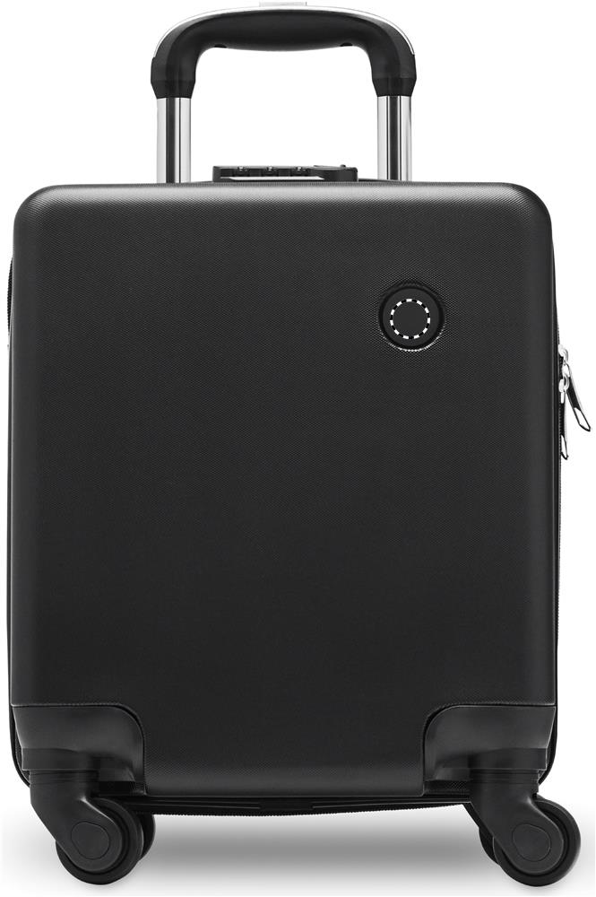 14 inch underseat luggage trolley with 4 wheels in ABS. It has an inside zippered pocket. Including a combination lock and double tube frame.