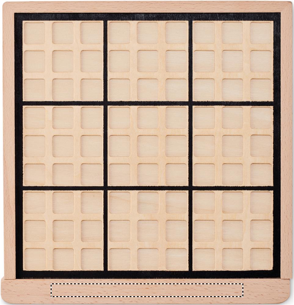 Deluxe wooden sudoku board. Includes 99 numbered wooden tiles. Game guide included with instructions.