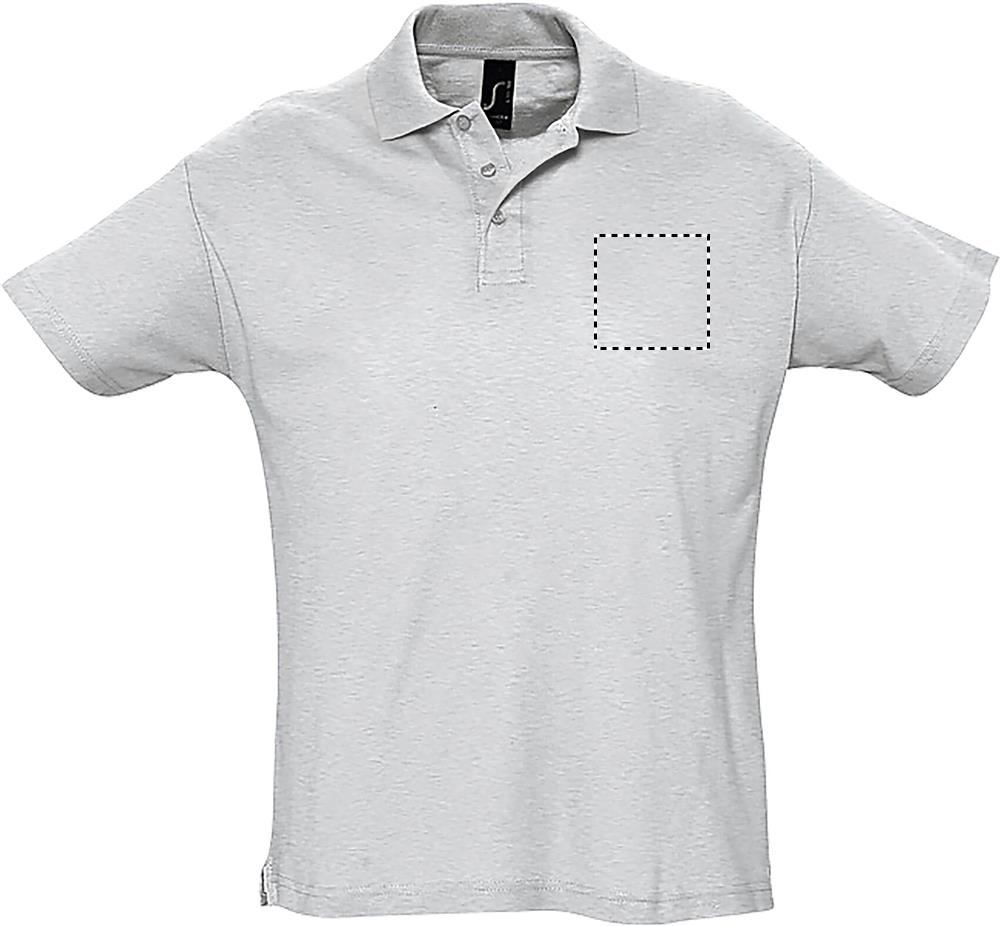 SOL’S SUMMER II, men’s polo shirt, 100% combed ringspun cotton piqué 170, rib collar, reinforcing tape on neck, reinforced button placket, short sleeves, tone on tone 3 button placket, straight hem with side slits, cut and sewn, spare button on the inside seam, (1) ash : 98 % cotton / 2 % viscose, (2) grey melange : 85 % cotton / 15 % viscose. About sizes matching, please refer to the size chart in the product documentation section.