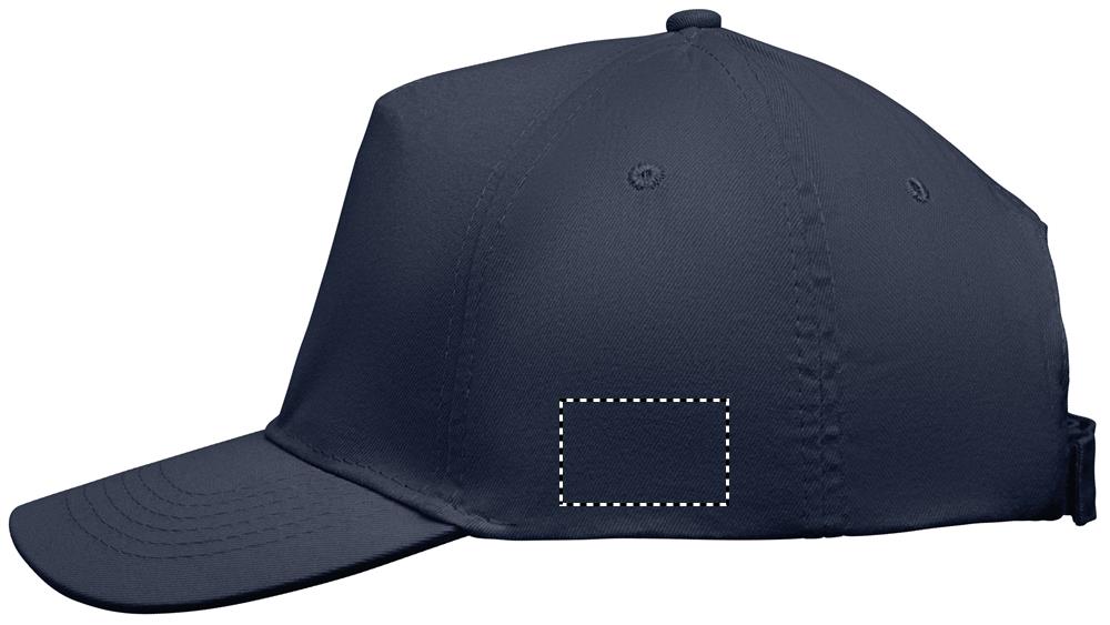 5 panel baseball cap in cotton twill 180 gr/m² with adjustable hook and loop closure.