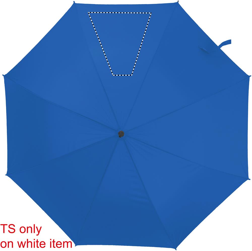 27 inch auto open umbrella in 190T pongee with black plated metal shaft and ribs. Black plastic tips. Straight black EVA handle. Manual closure.