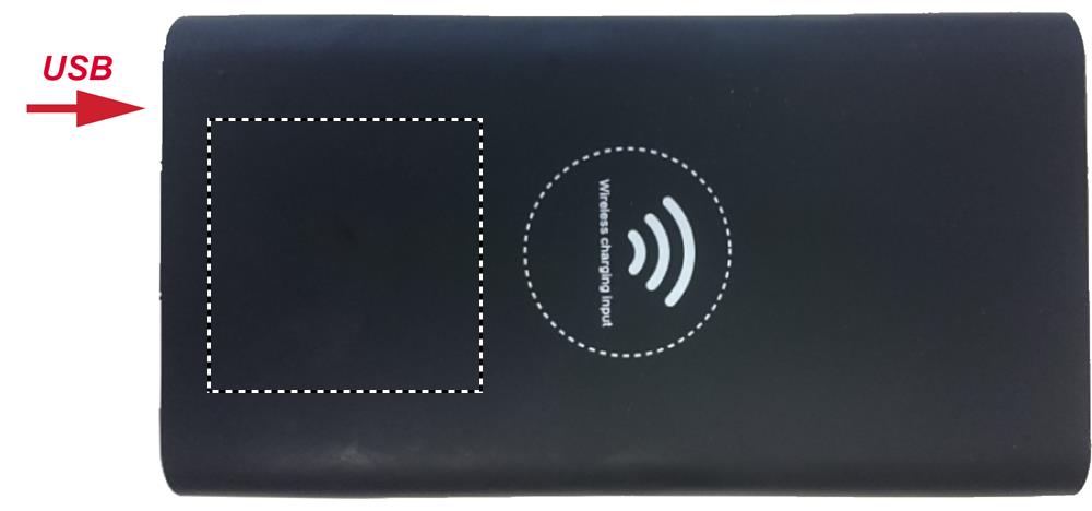 Wireless powerbank. 8000 mAh. ABS with rubber finish. Outputs: USB-C and USB-A up to 20W. Wireless charging up to 15W. Input: USB-C and Micro-B. 6 LED indicators. USB-C to USB-C cable with USB-A adapter included.