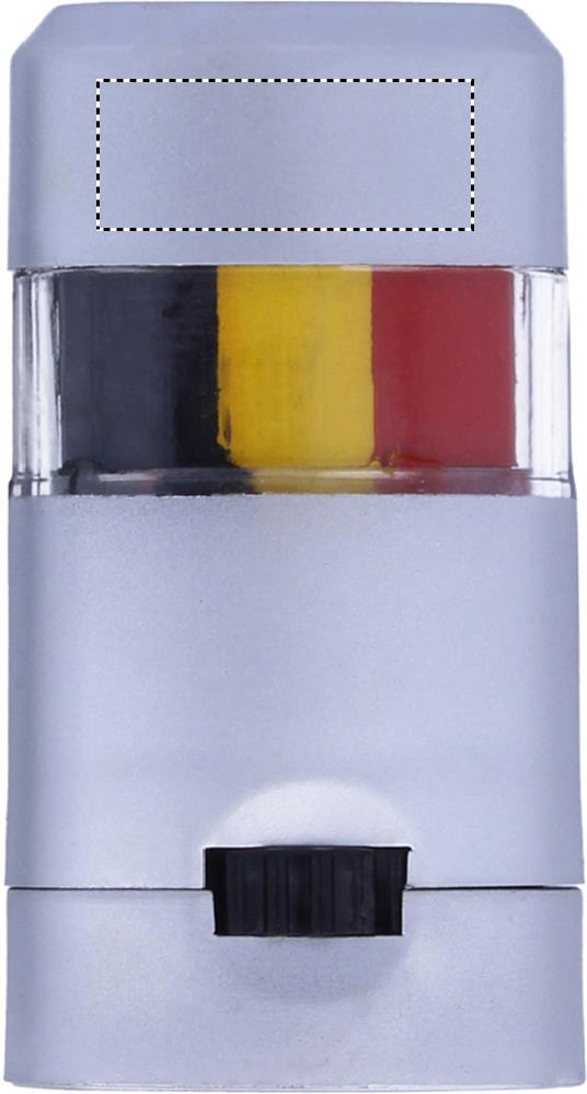 Body paint flag stick presented in silver case and transparent in the middle.